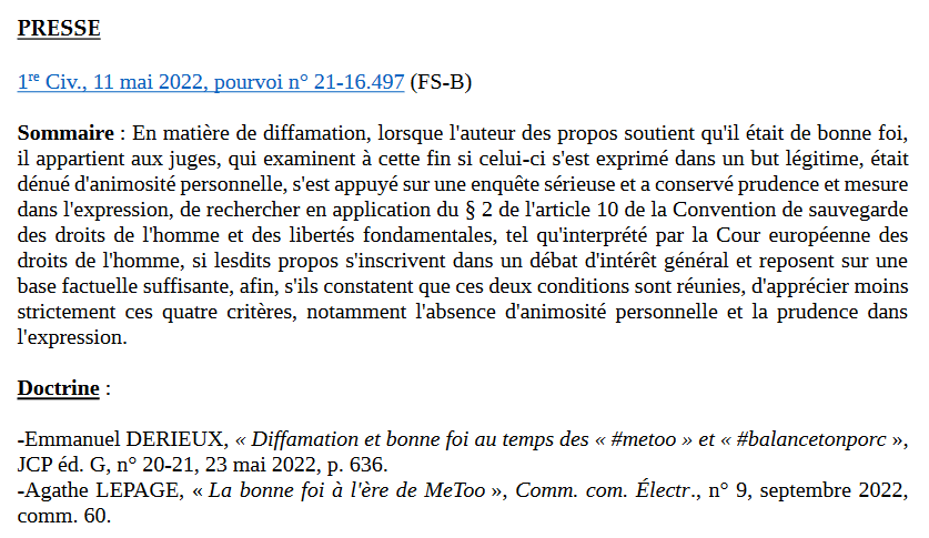 Exemple: Déclarer lors d’un débat public qu’un adversaire politique est un « repris de justice ».