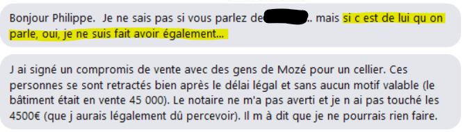 Maître CABALLÉ, lui, n’a jamais répondu a aucun mail ni à un courrier recommandé. Il est à ce jour toujours en possession des 13.800€ d’honoraires perçus en tant qu’intermédiaire dans cette vente immobilière.