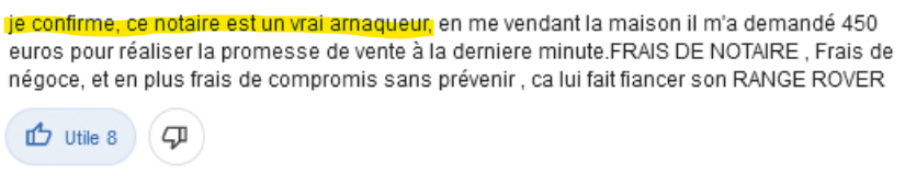 Maître CABALLÉ a perçu pour cette vente des honoraires de négociation de 13.800€ (pièce 5), en sus de sa mission de service public qui consistait à rédiger et authentifier l’acte de vente. Ce courrier de « mise en demeure » a permis à Maître CABALLÉ de percevoir une commission de 16% du prix de la maison, là où n’importe quel autre professionnel de l’immobilier perçoit en général autour de 4%.