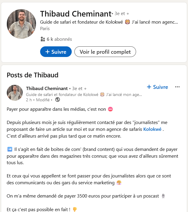 « Payer pour apparaître dans les médias, c’est non! ». Vous voyez! On vous avait pas menti…