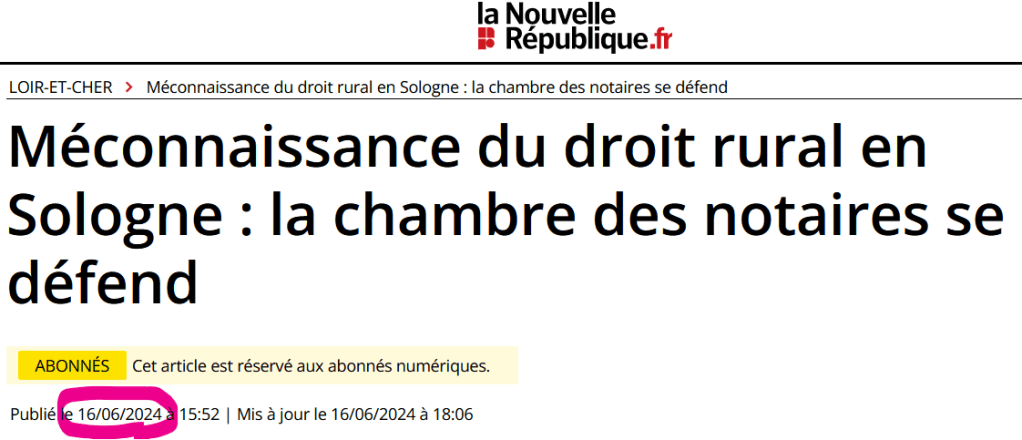 Nous vous partagions il y a quelques jours cet article « Si je ne relis pas certains actes, cela m’arrive de retrouver des bêtises ». En Sologne l’élu s’interroge sur le notaire à choisir dans lequel des élus locaux ont exprimé leur inquiétude face à la diminution du nombre de notaires compétents dans ce domaine.