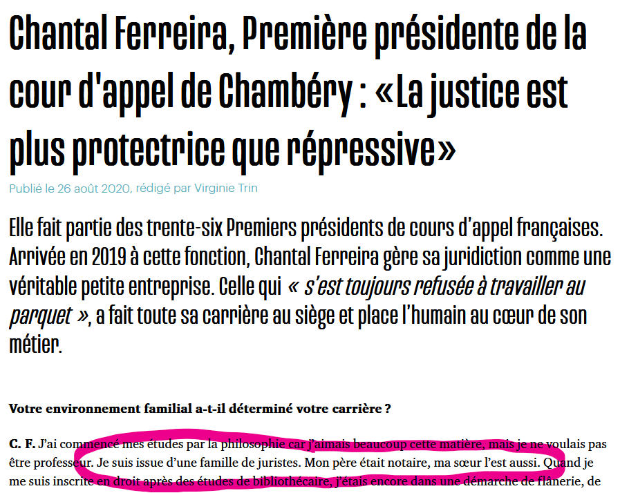 Chantal Ferreira est la Première présidente de la cour d’appel de Chambéry. Dans un article paru sur le site la vie nouvelle, elle nous explique que: